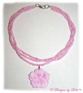 Pink Multi-strand Necklace with Shell Hibiscus Flower Pendant and Sterling Silver Double Hearts Hook Clasp to ArtFire page for purchase or more photos and info... $60.00 |