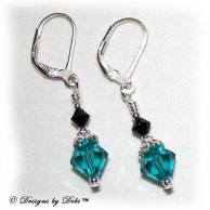 Jet Black and Blue Zircon Swarovski Bicone Crystals and Sterling Silver Leverback Earrings to ArtFire page for purchase or more info... $19.00 |