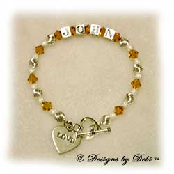This is a gallery of some of the Personalized Keepsakes Bracelets that I have made over the years. Browse through the images to get an idea of how different styles look. If you're interested in ordering one, you can find them here.