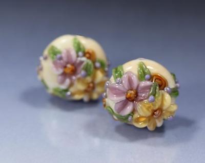 Hi everyone. I started designing jewelry in 2004, and I started making Lampwork beads in June of 2007. My glass addiction soon took over! I started on a hothead, which I soon outgrew, so to speak, after taking a beginners lampwork class. In which I was taught how to make round beads (not very pretty when I was done..lol) After that I bought the equipment to set up my own home studio, and have been adding to it ever since. I was fortunate enough to take a class this past spring with Lydia Muell that was just awesome, planning another in October with Emilio Santini, so excited! Tutorials are an excellent way to learn new techniques, and helped me to develop my current obsession ........flowers! I also love photography and go out and "shoot" as often as I can. You can visit my Etsy shop at: